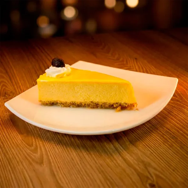 Base de vainilla, relleno de queso crema y pulpa de maracuyá.