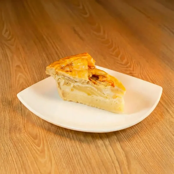 Masa quebrada dulce con rodajas de manzana natural y salsa especial.